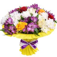 Букет из 5 роз, 8 альстромерий и 8 хризантем